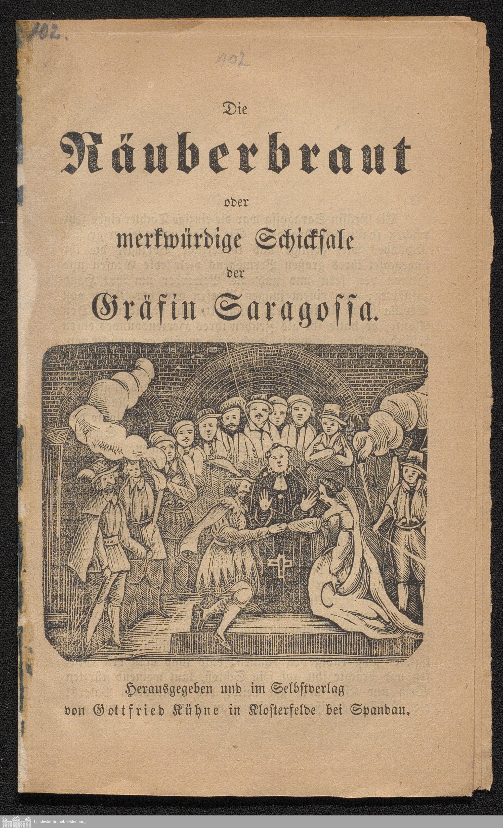- Die Räuberbraut oder merkwürdige Schicksale der Gräfin Saragossa. Hg. und im Selbstverlag von Gottfried Kühne in Klosterfelde bei Spandau. Berlin: Druck von Hermann Müller o.J. [um 1870]. Landesbibliothek Oldenburg, Spr XIII 4c 2 a:3,102.