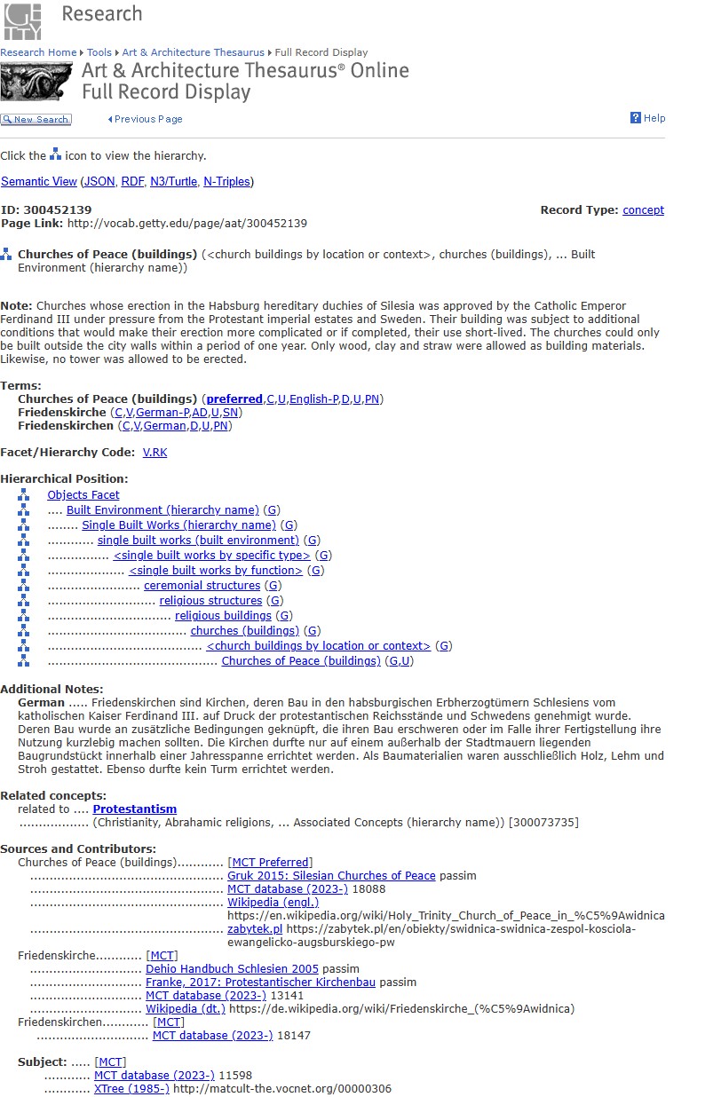 - Figure 3: The term ›Church of Peace‹ (Gnadenkirche), AAT. [Screenshot: Ksenia Stanicka-Brzezicka 2025]