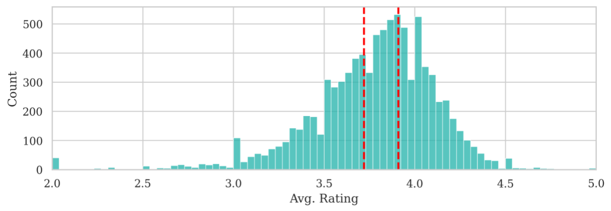 - Figure 3: Histogram of Goodreads rating in ›mediocre‹ subset. [Chart: Feldkamp et al. 2025]